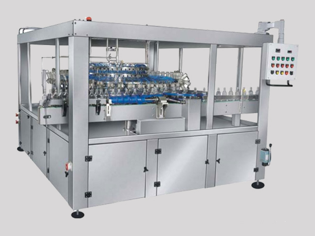 Fully Automatic Rotary Bottle Rinsing Machine is ideal for all type of bottles & finds wide application in Liquor, Mineral Water, Pharmaceuticals, Juice, Food, Cosmetics, etc. Bottles enter the machine through its inbuilt slat conveyer, get loaded automatically rinsed from inside as well as from outside and get unloaded automatically at out feed conveyer. These machines are of robust design for trouble free operations Change over to different size of bottles with same neck can be done with within minimum time, since wing nut are uses.